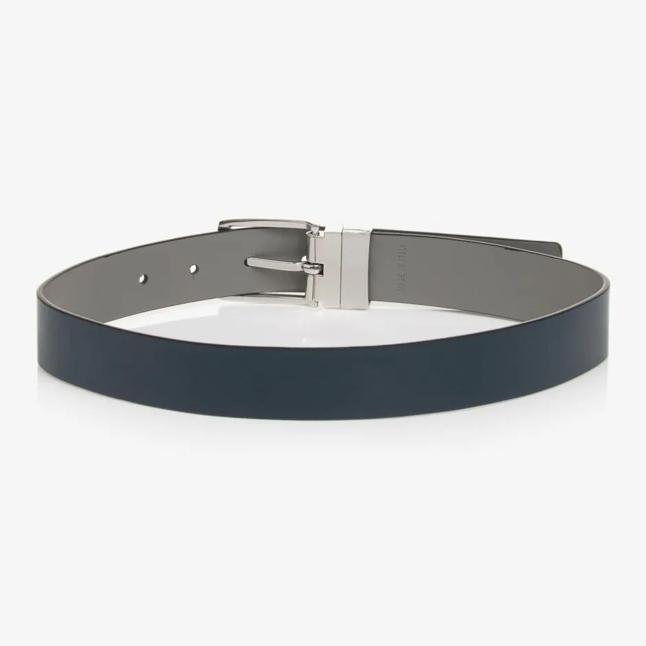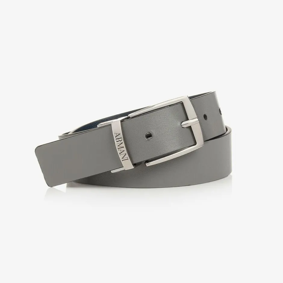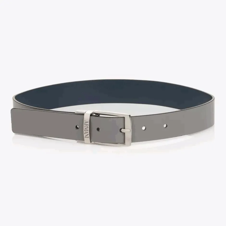 Emporio Armani Boys Blue & Grey Reversible Leather Belt Outlet
