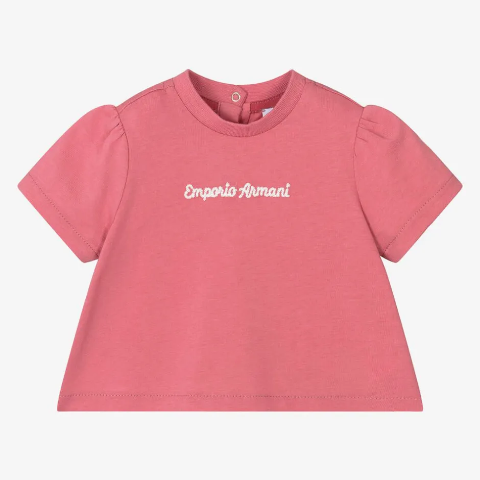 Emporio Armani Girls Pink Cotton T-Shirt Discount