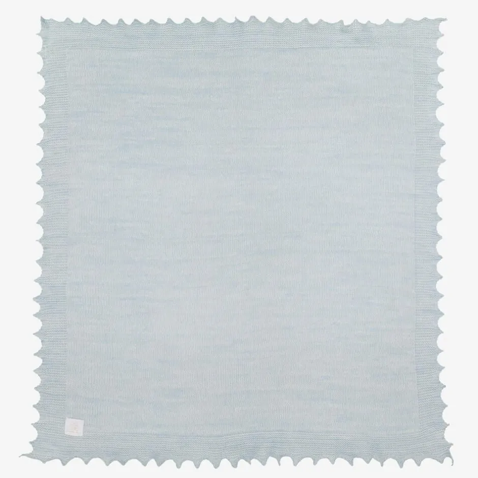 English Trousseau Blue Wool Baby Shawl (122cm) New
