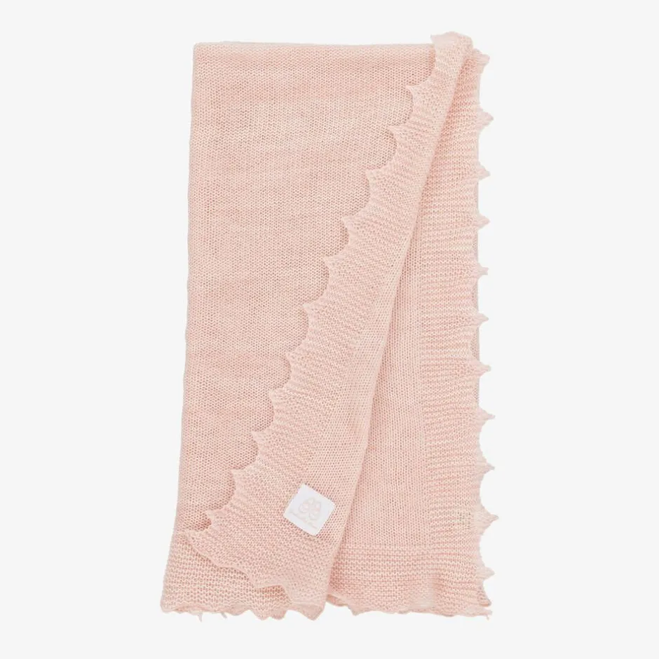 English Trousseau Pink Wool Knit Baby Shawl (122cm) Hot
