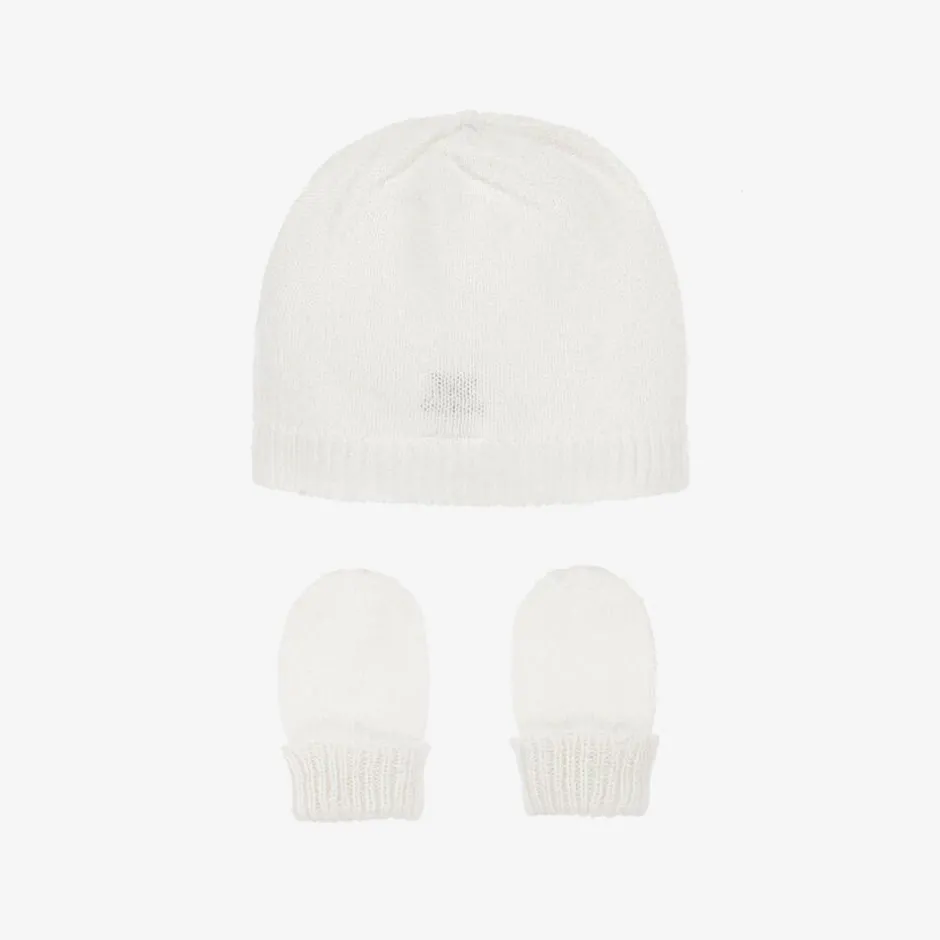 G.H.Hurt amp; Son White Cashmere Baby Hat & Mittens Set