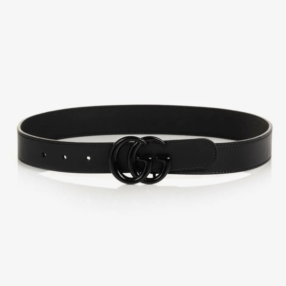 A classic black leather belt for boys and girls from luxury brand Gucci. This Italian-made accessory is signed with the label's tonal black Double G logo as a metal pin buckle, adding that signature detail the designer is renowned for. Included is a branded storage bag to store the item when not in use.