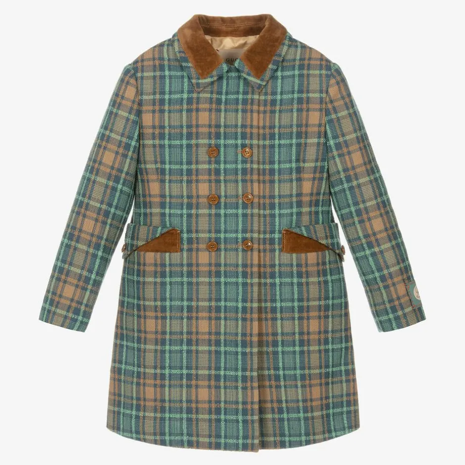 Gucci Girls Blue & Brown Wool Check Coat Best