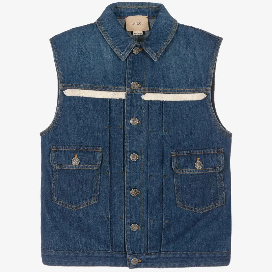 Gucci Teen Blue Embroidered Denim Gilet Best