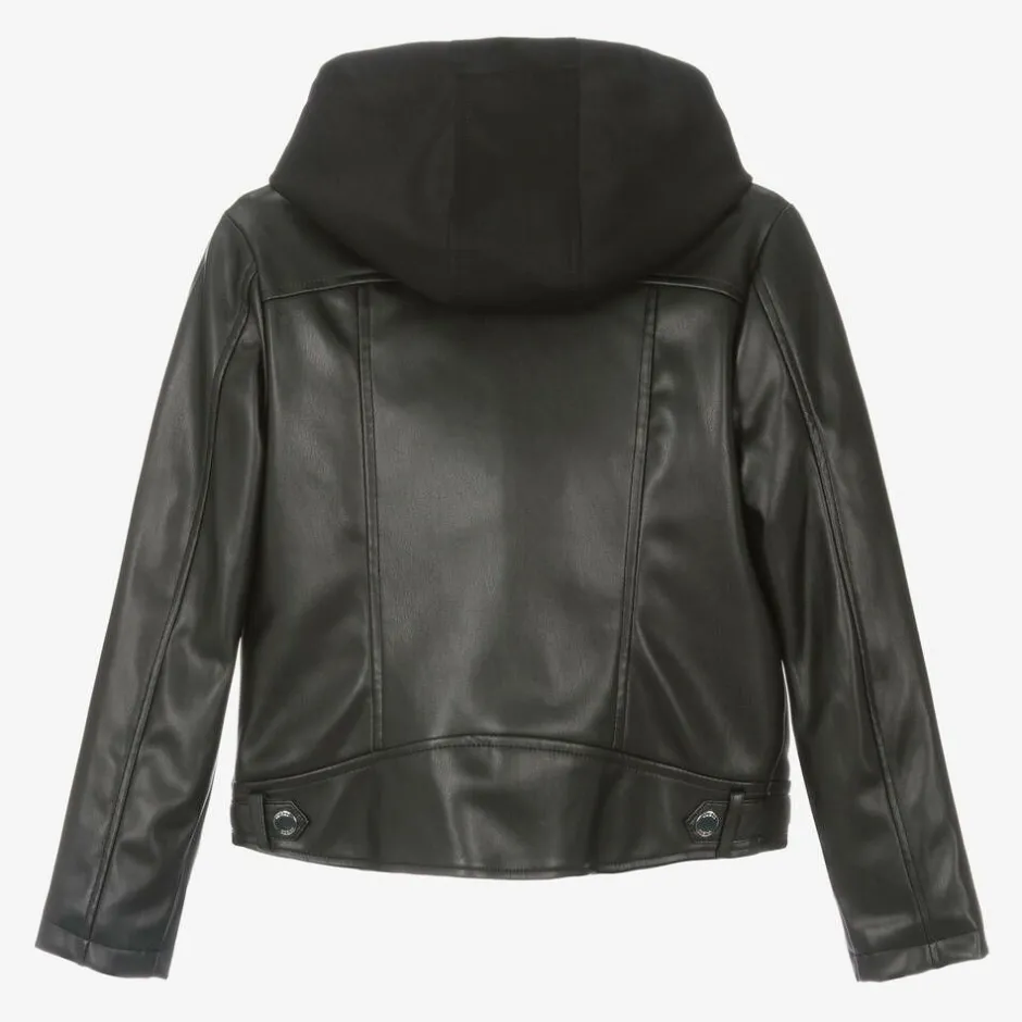 Guess Girls Black Faux Leather Biker Jacket Clearance