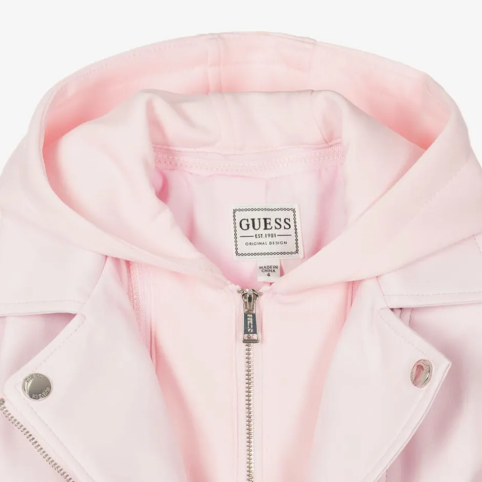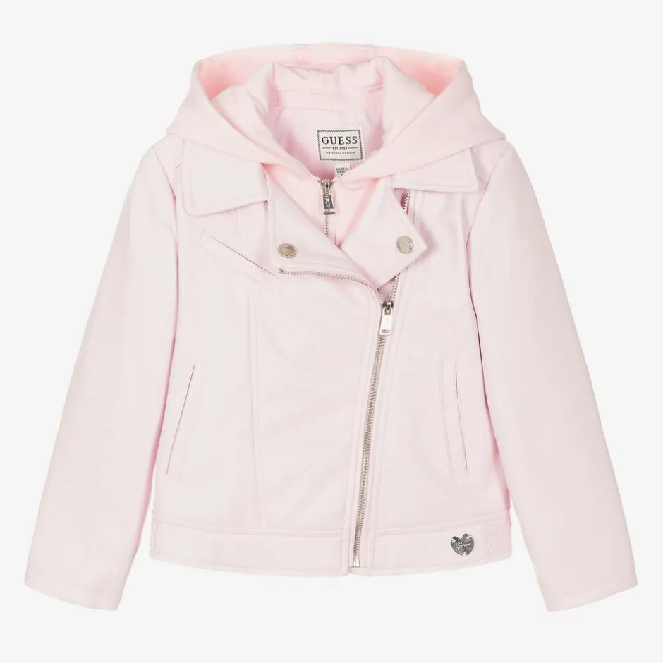 Guess Girls Pink Faux Leather Biker Jacket Outlet