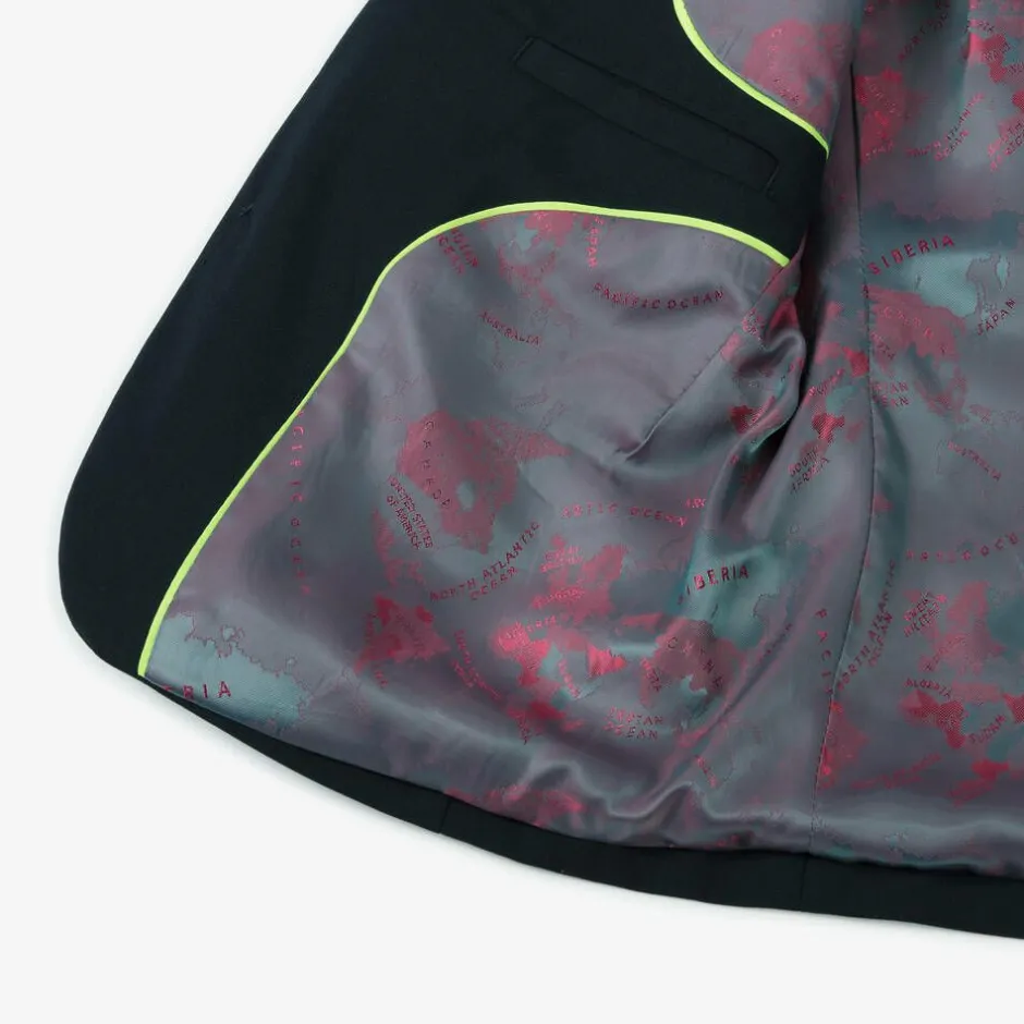 Smart and stylish for boys, a navy blue suit by House of Cavani. Woven in smooth fabric with a subtle sheen, it is beautifully tailored for formal occasions. The single-breasted jacket has front pockets and an additional chest pocket, with a branded lapel pin adding a distinctive touch. The jacket and waistcoat have a silky lining for luxurious comfort, and the trousers have slanted pockets, a buttoned back pocket, and a part elasticated waist for a good fit.