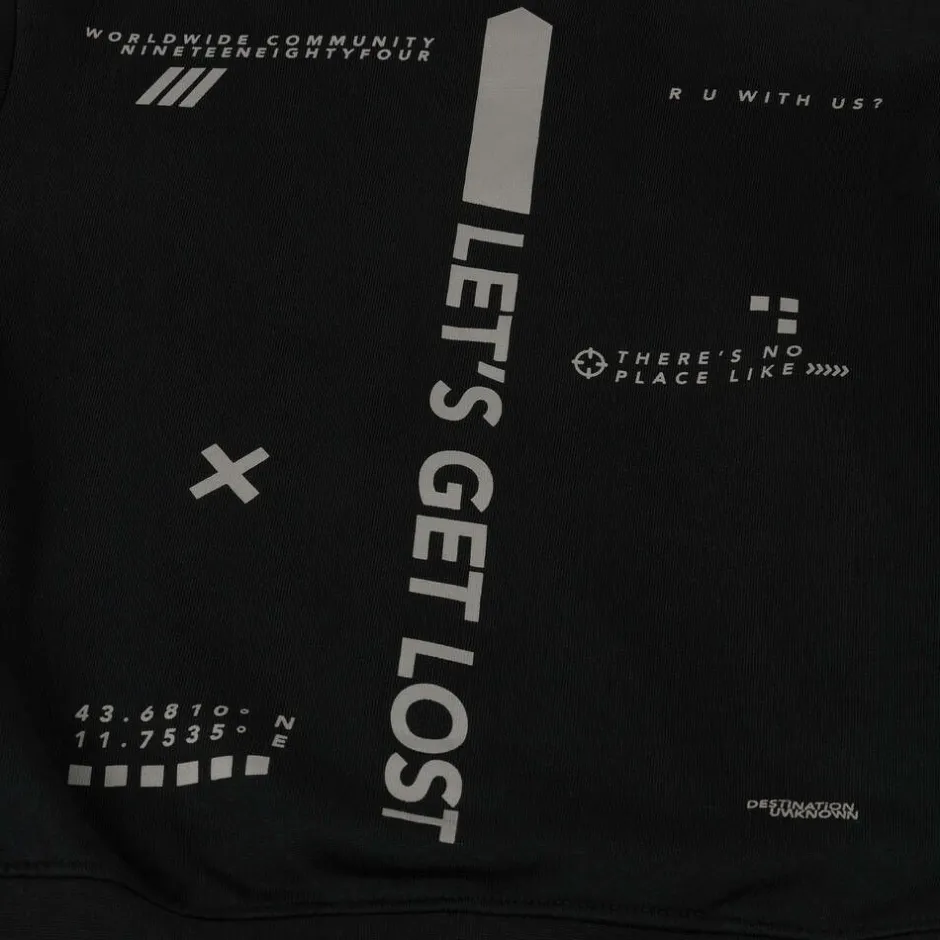 A black tracksuit for older boys by iDO Junior, made from soft mid-weight cotton jersey with a cosy fleecy interior. Great for an adventurous look, the long-sleeved hoodie is printed with neon orange slogans on the front and a black 'let's get lost' catchphrase design on the back. Complete with a pouch pocket on the front, it has contrasting grey detailing for a cool look. The coordinating joggers have slanted pockets, a patch pocket on one leg, and an elasticated drawstring waist for a comfortable fit.