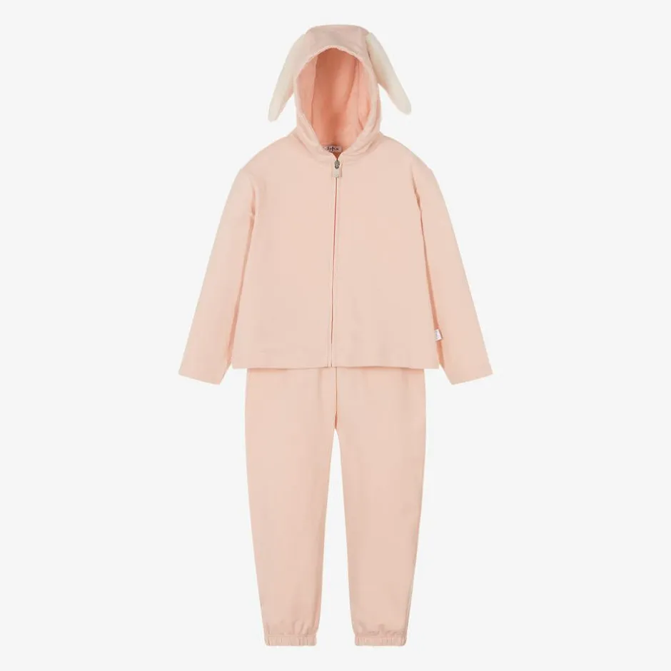 Il Gufo Girls Pink Cotton Bunny Tracksuit New