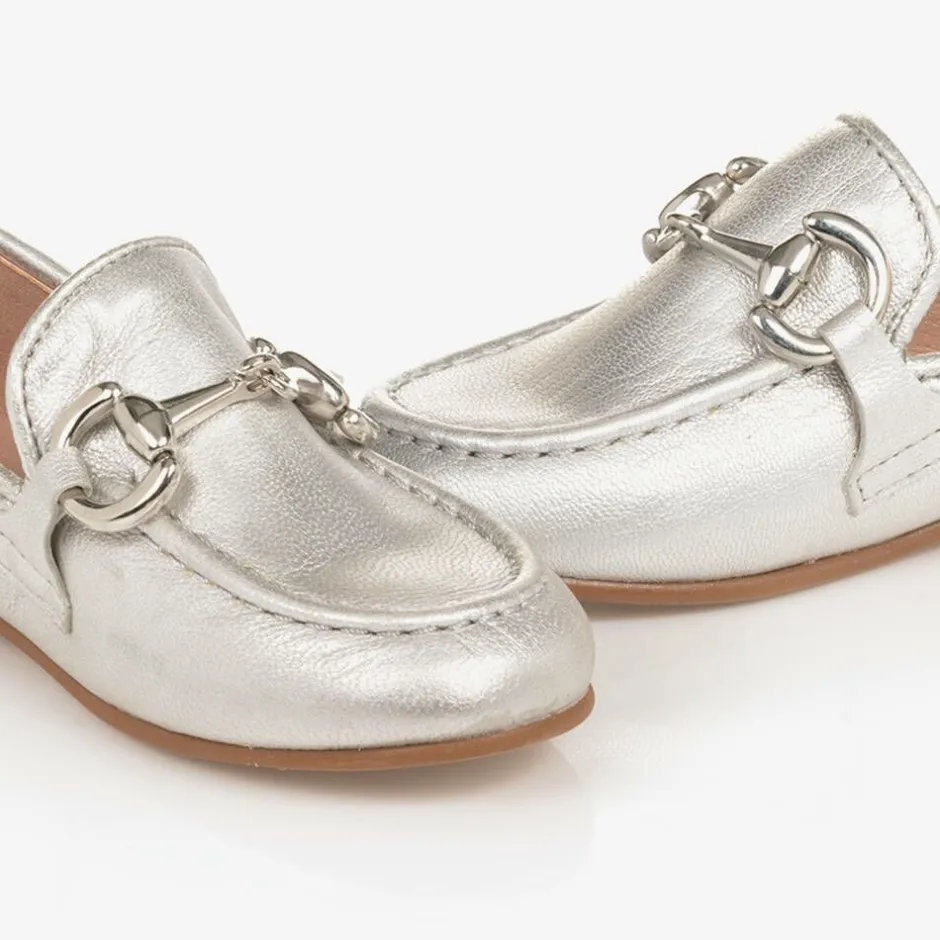 Irpa Girls Silver Leather Loafers Discount
