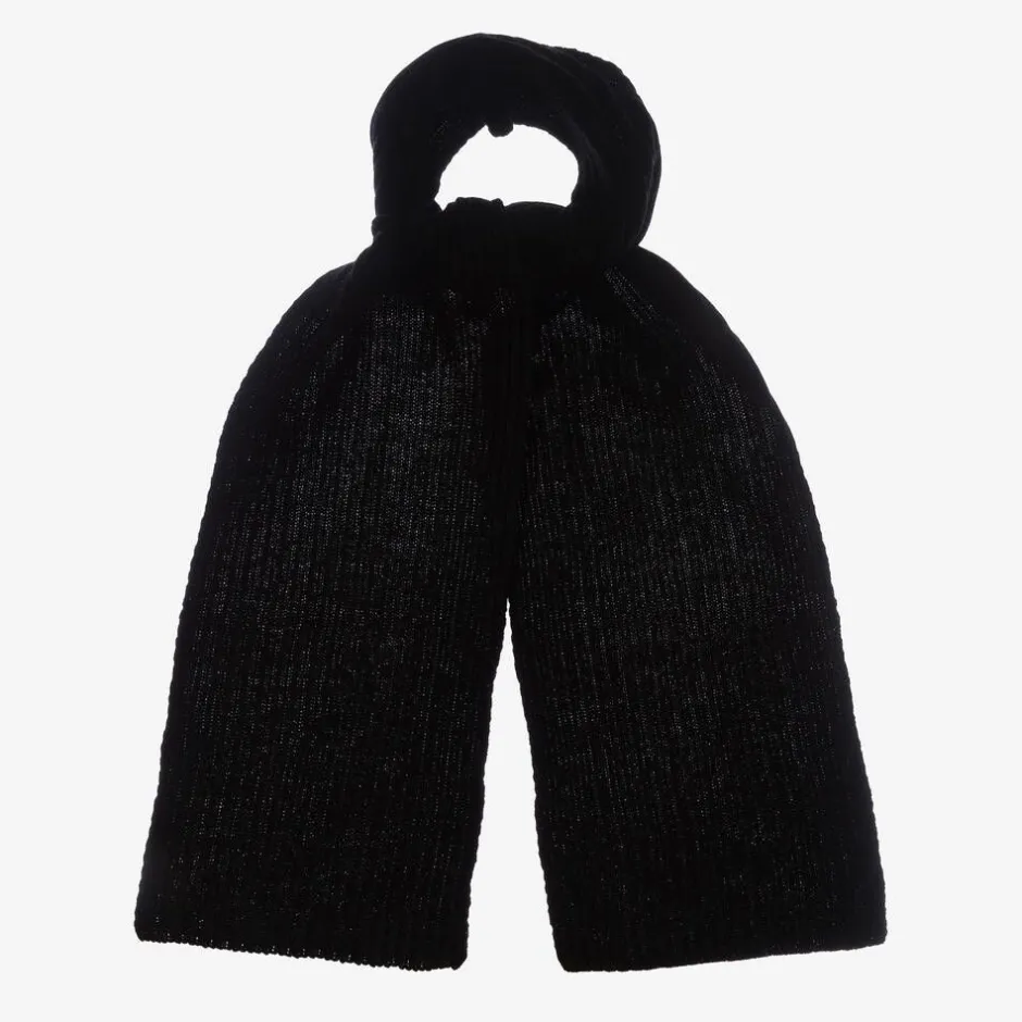Black ribbed scarf for boys and girls from Jamiks, made in a soft blend of wool and viscose with a touch of luxurious cashmere. Softly knitted, this warm accessory is ideal for those colder months.