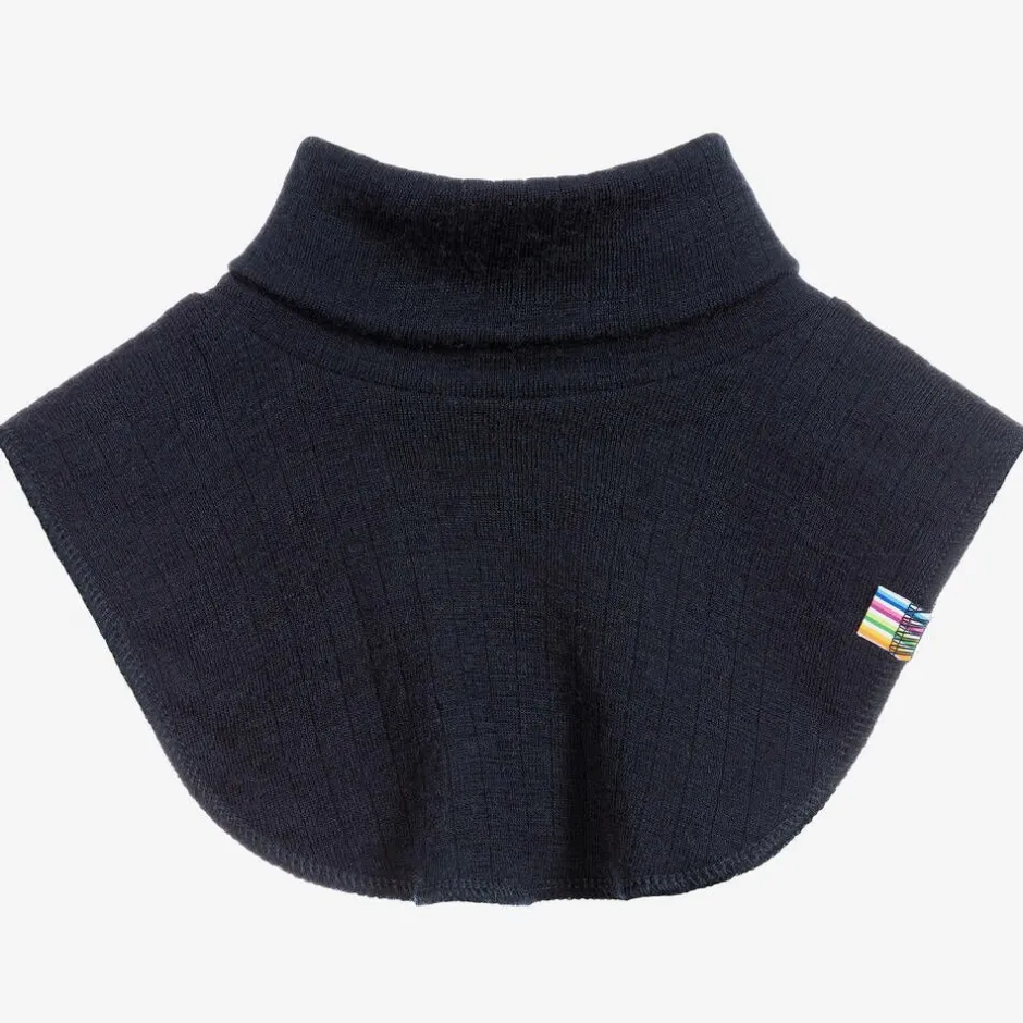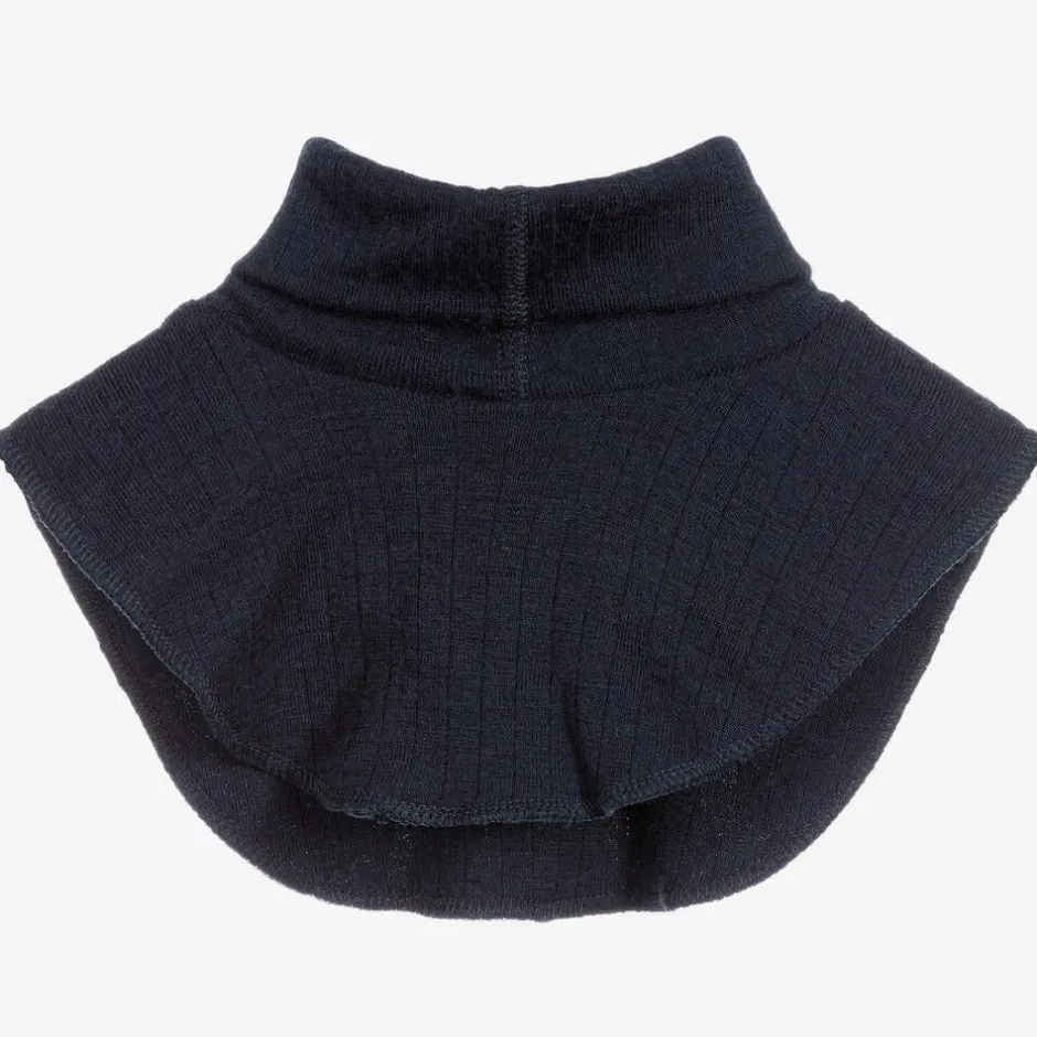 A navy blue thermal neck warmer for girls and boys by Joha. Made in lightly ribbed, super soft Merino wool.