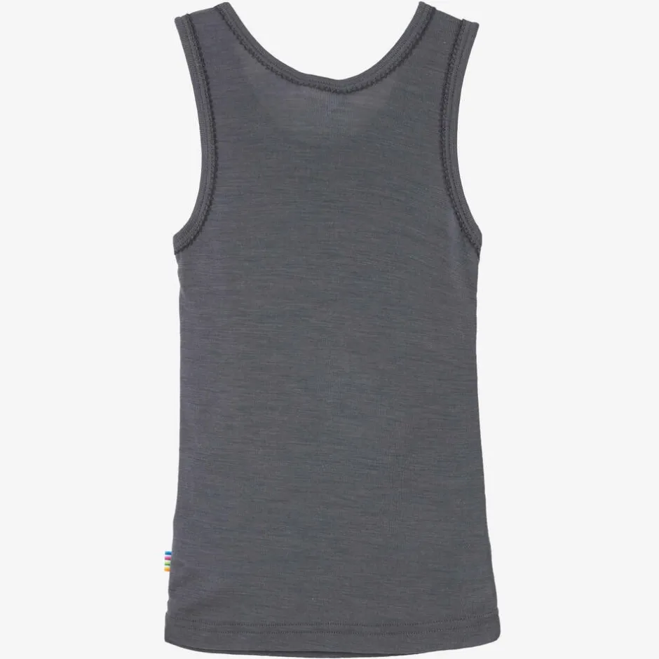Grey thermal vest for boys and girls, by Danish designer Joha. Made in beautifully soft and lightweight Merino wool and silk, it is designed to layer underneath your outfit for extra warmth.