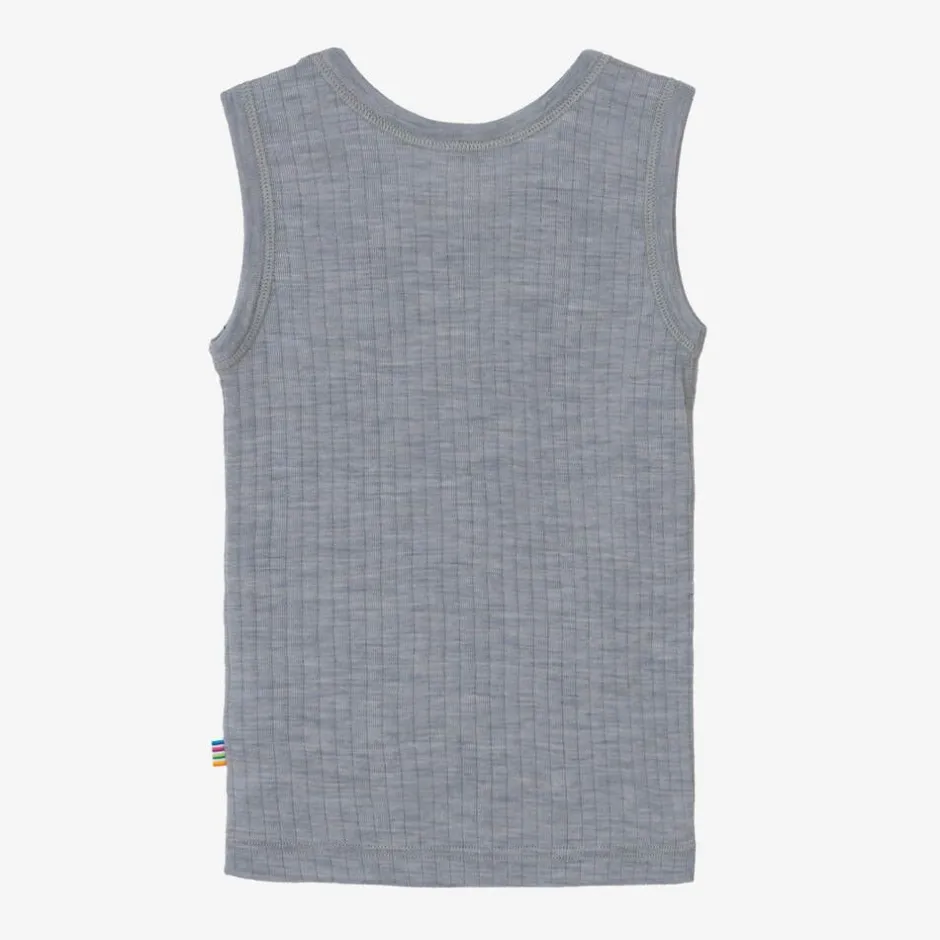 Beautifully soft grey thermal vest for boys and girls by Joha, ideal for children's delicate skin. Knitted in super lightweight Merino wool, it is expertly designed to absorb moisture and to naturally regulate body temperature. In a ribbed design, it has a striped rainbow logo tab on the side seam.