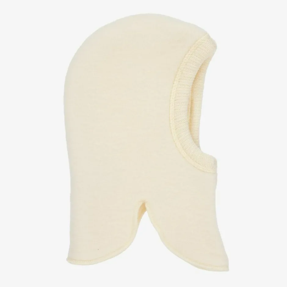 An ivory balaclava for little girls and boys by Joha. Soft and comfortable, it is made in a fleecy thermal, pure Merino wool.