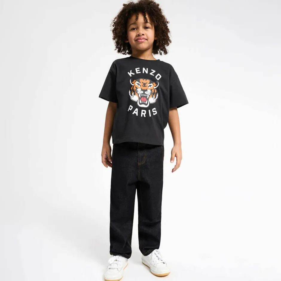 KENZO KIDS Black Cotton Lucky Tiger T-Shirt Discount