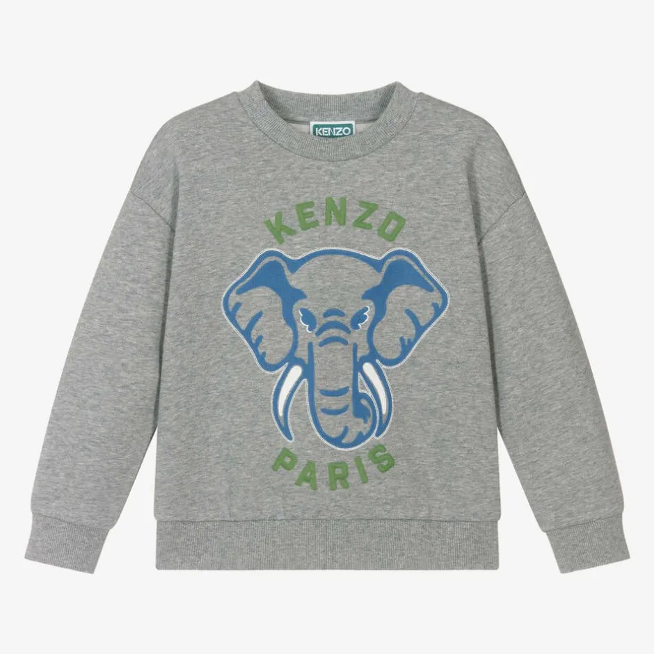 KENZO KIDS Boys Grey Cotton Elephant Sweatshirt Discount