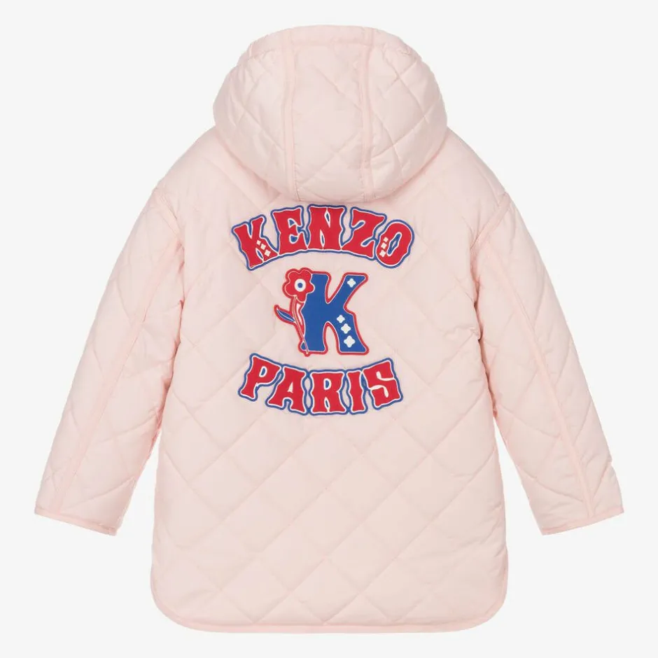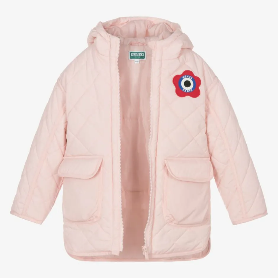 KENZO KIDS Girls Pink K Flower Quilted Coat Hot