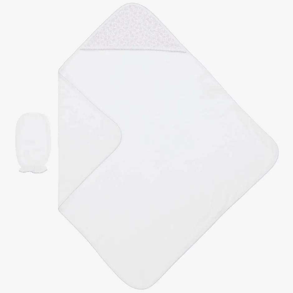 Kissy Kissy Girls White Summer Gardens Hooded Towel & Mitt Set New