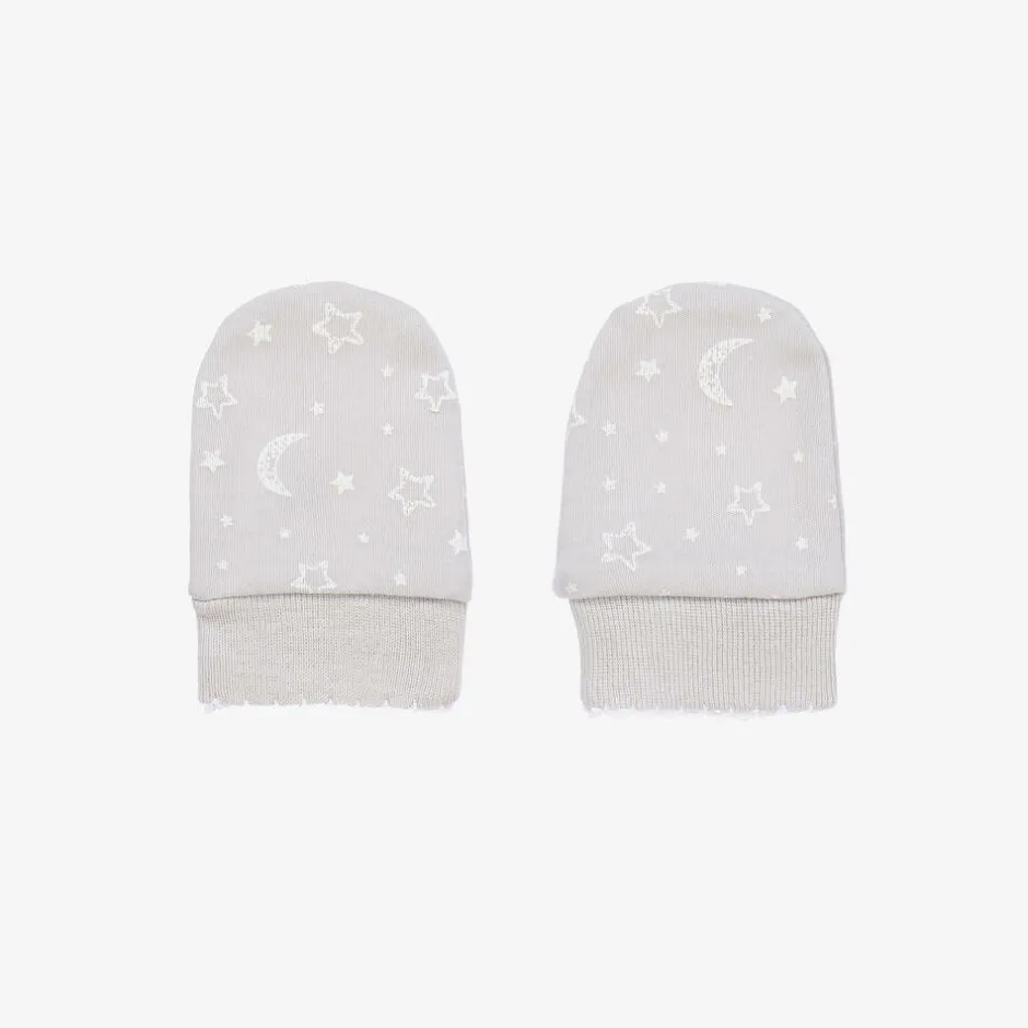 Kissy Kissy Grey Cotton Crescent Moonlight Scratch Mittens Best