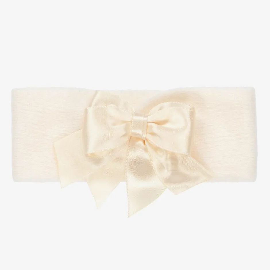 Younger girls ivory headband by La Perla. Knitted in soft wool for comfort and warmth, it is soft and stretchy and embellished with a satin bow in the centre.