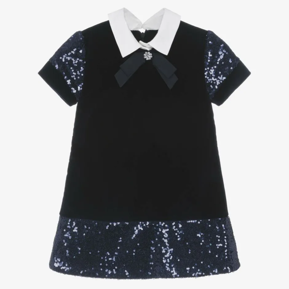 Lapin House Girls Navy Blue Velvet & Sequin Dress Clearance