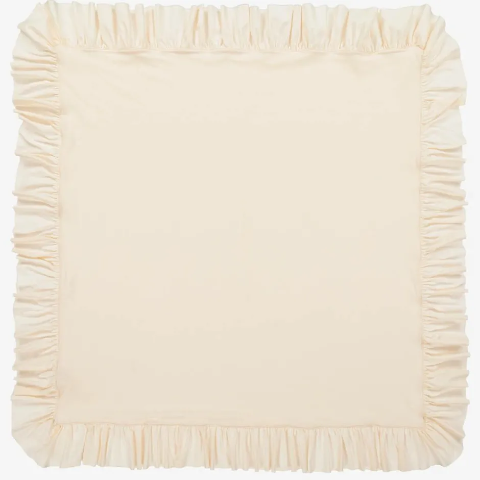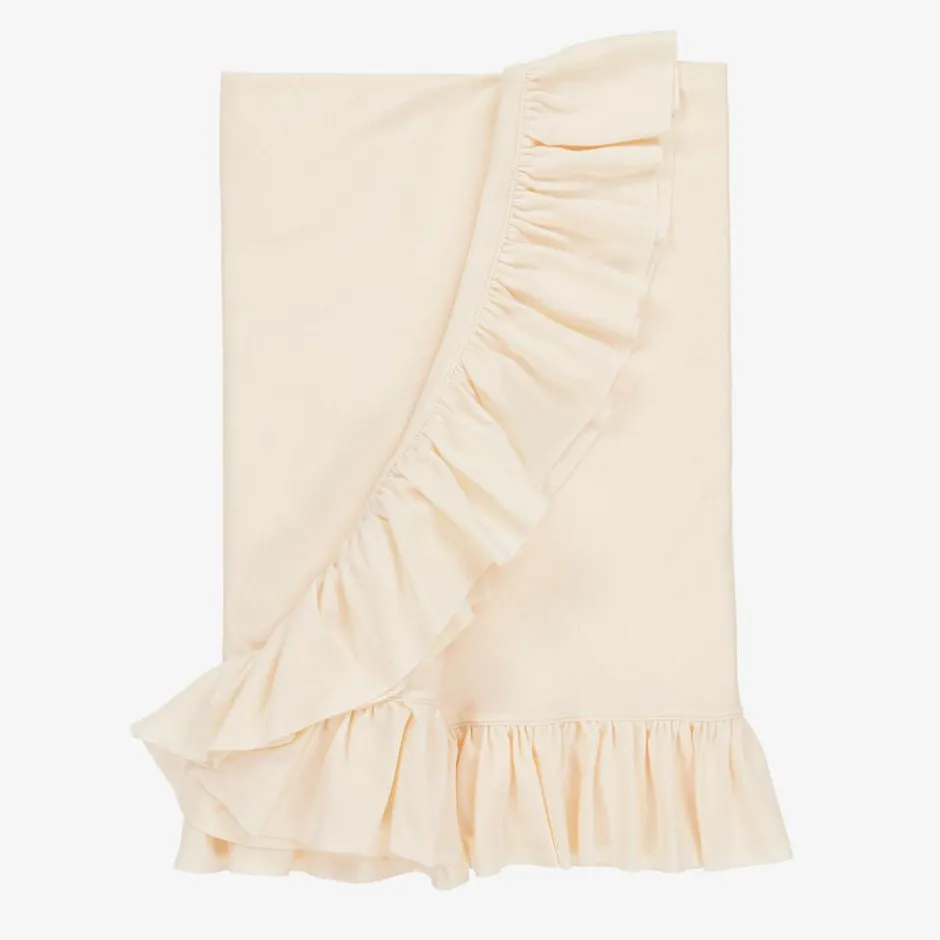An ivory blanket for baby girls from Lemon Loves Layette, made in a beautifully soft Pima cotton jersey. An ideal area to lay baby on, or as a lightweight cover when out and about, this gorgeous blanket is trimmed with a pretty frill.