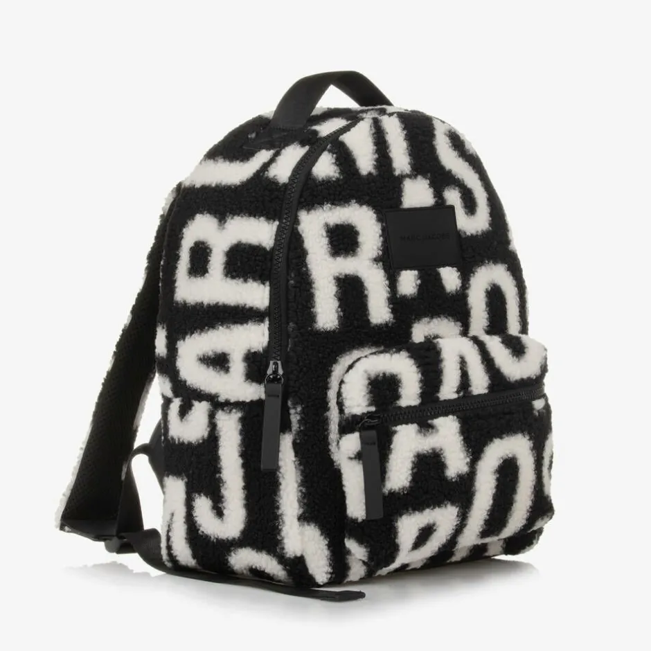 MARC JACOBS Black & White Sherpa Fleece Backpack (32cm) Outlet