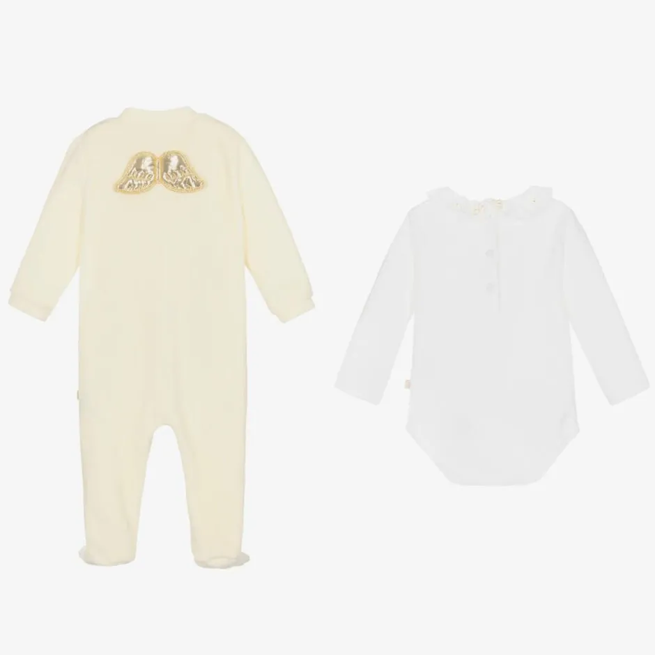 Marie-Chantal Ivory Velour Angel Babygrow Set New