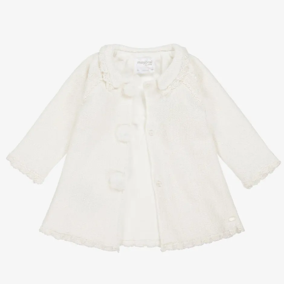 Mayoral Girls Ivory Knitted Pram Coat & Hat Set Sale