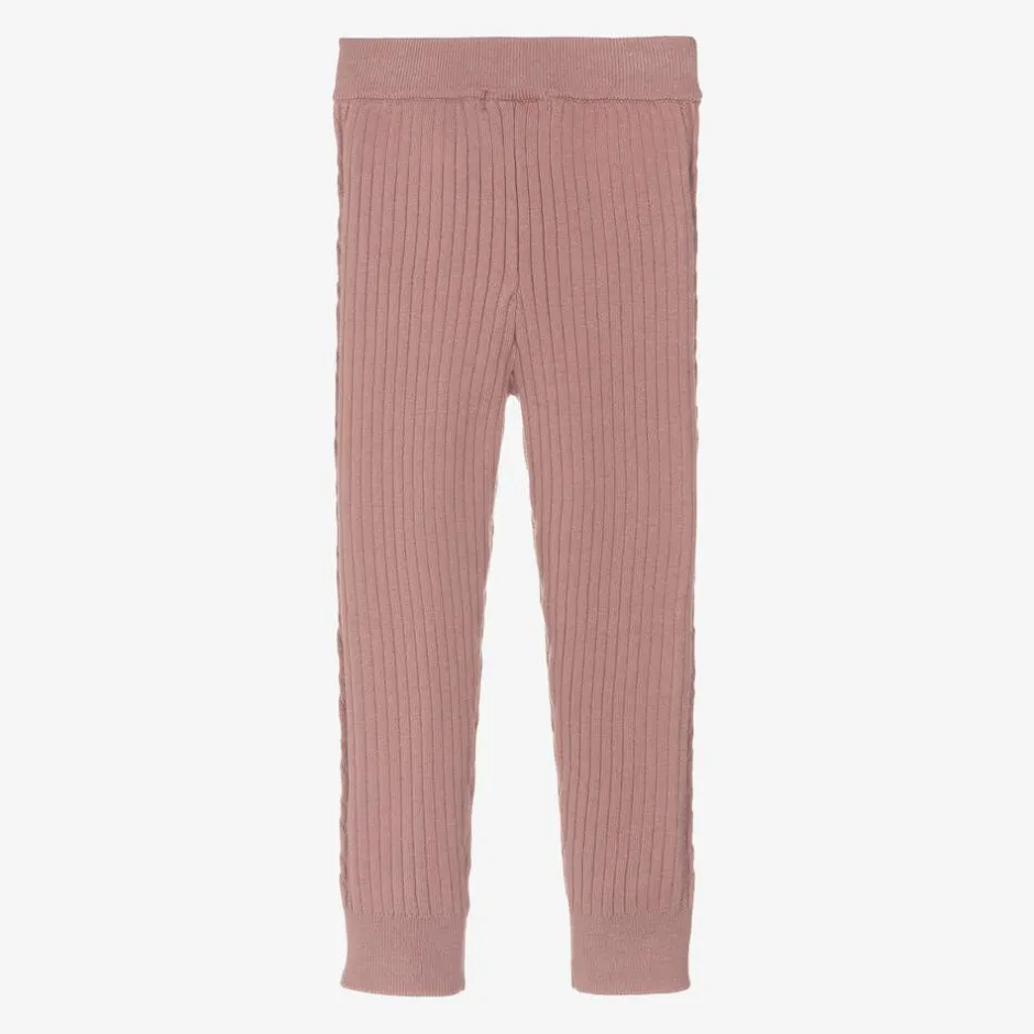 Lovely duskypink ribbed leggings for girls by Spanish brand Mayoral. Super soft and comfortable, they are knitted in a viscose blend with a cable knit pattern on the sides. A bow on the front of the elasticated waistband adds a pretty finishing touch.