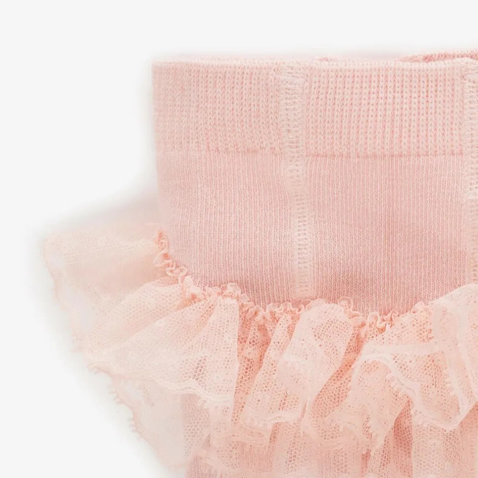 Light pink tights for baby girls by Spanish brand Mayoral. Soft and stretchy, these adorable tights are trimmed with pretty lace frills on the back. This product contains Tencel Modal fibres.