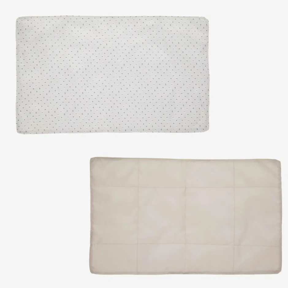 An ivory changing backpack by Mayoral, made in faux leather and lined in silky logo-patterned twill. Cleverly designed to store baby's essentials, it has a velcro-closing side pocket suitable for wipes or tissues, an inner foil-lined, insulated bottle holder, and multiple pockets. This practical bag has a two-way zip fastening and a front pocket with a drawcord detail. The bag includes a silky, padded changing mat. The branded carry handles and clip-on buggy straps are made in durable canvas, while the adjustable shoulder straps are padded for comfort.