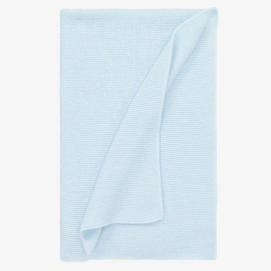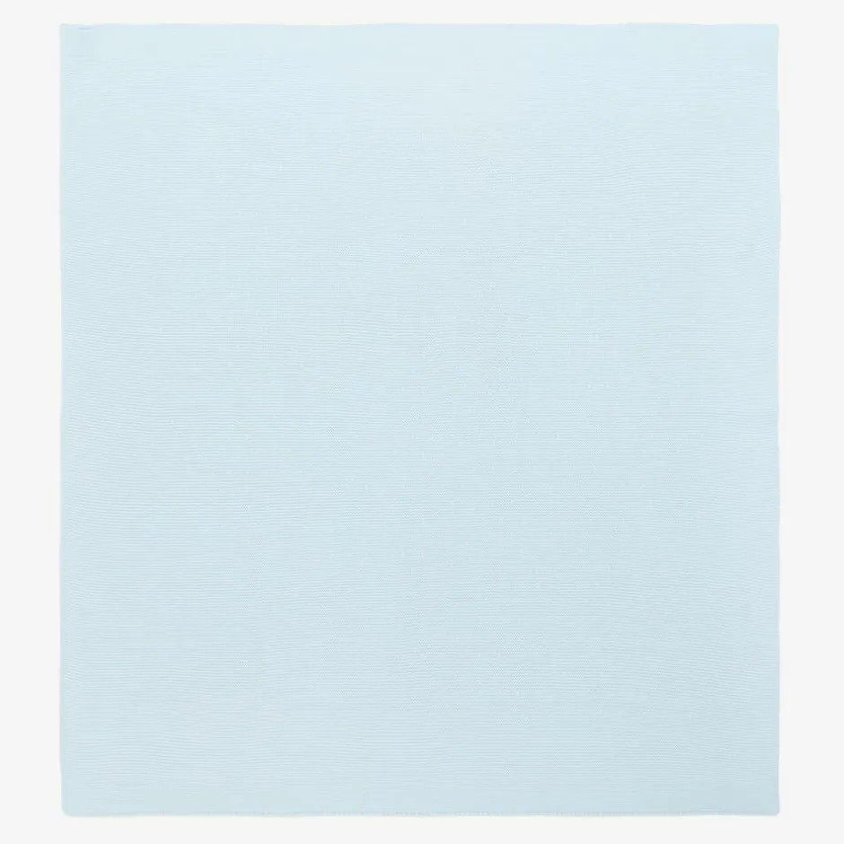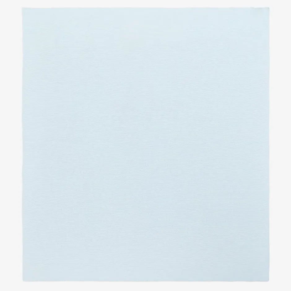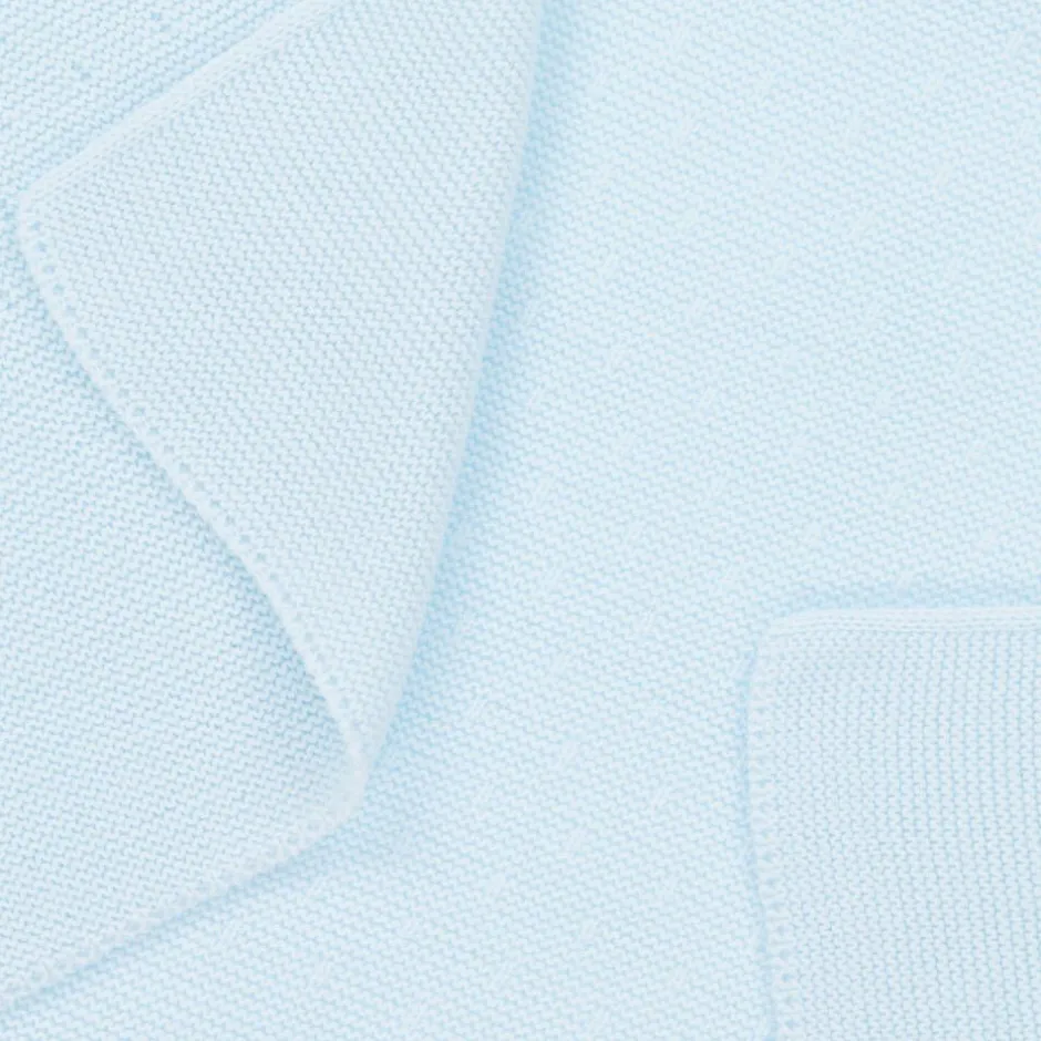 Light blue blanket for baby boys and girls by Spanish brand Mebi. Made in a soft knit with a subtle line design in the centre, it is ideal for use in the car seat or stroller and also makes an attractive nursery accessory.