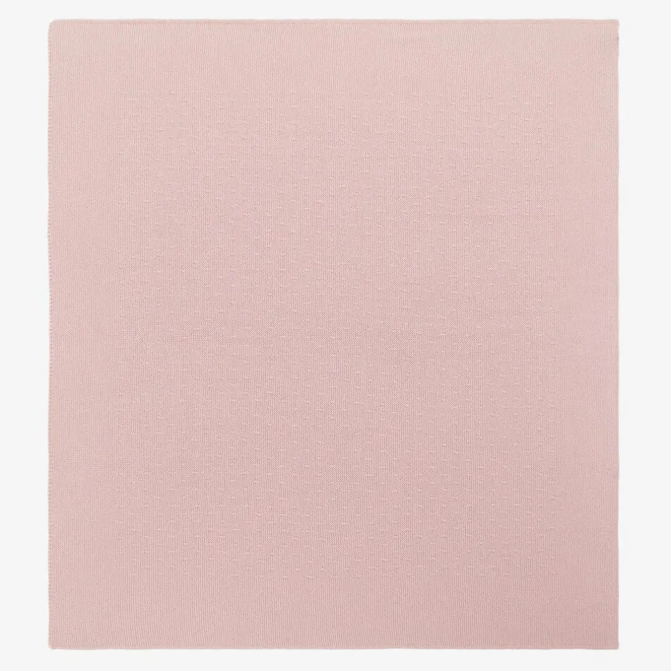 Dusky pink blanket for baby girls by Spanish brand Mebi. Made in a soft knit with a subtle line design in the centre, it is ideal for use in the car seat or stroller and also makes an attractive nursery accessory.
