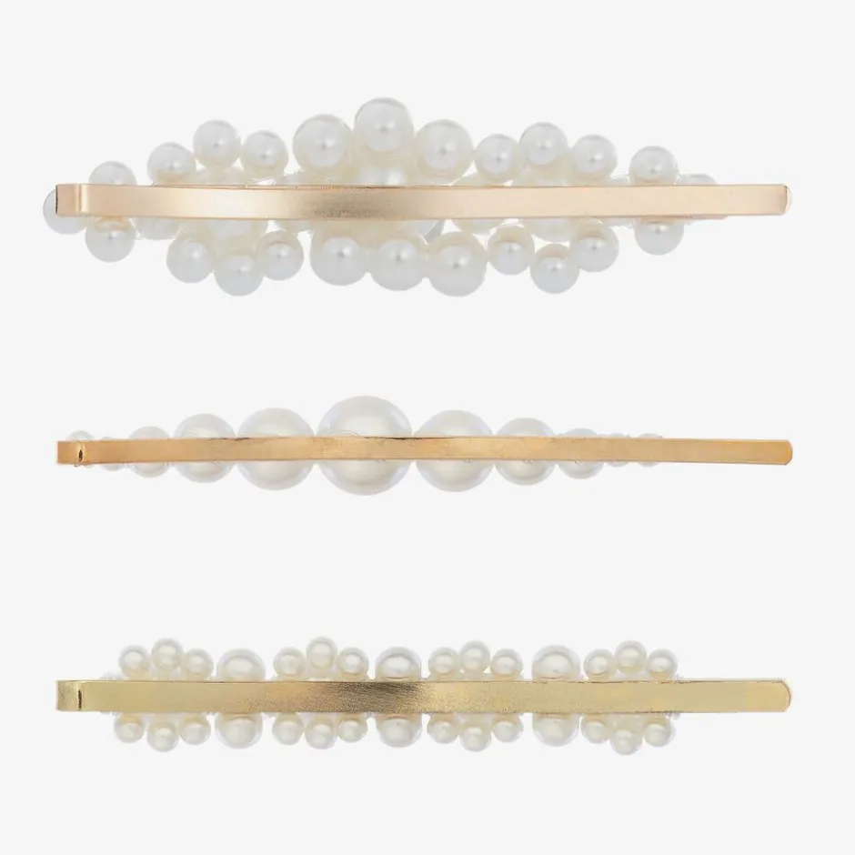A pack of three stylish pearl bead hair clips for girls, by Milledeux.