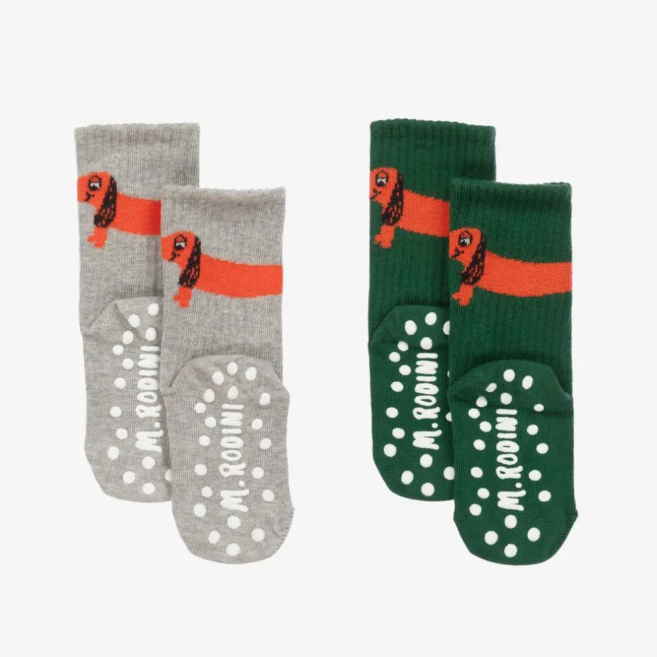 Mini Rodini Green & Grey Cotton Anti-Slip Socks (2 Pack) Hot