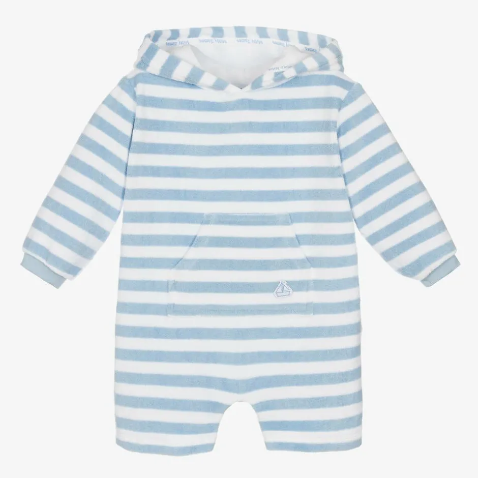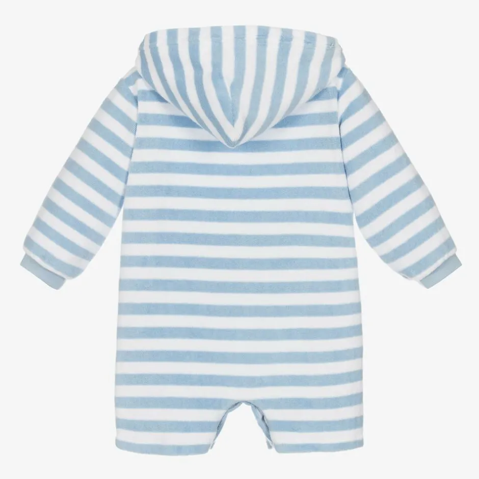 Mitty James Pale Blue Stripe Towelling Baby Beach Romper Discount