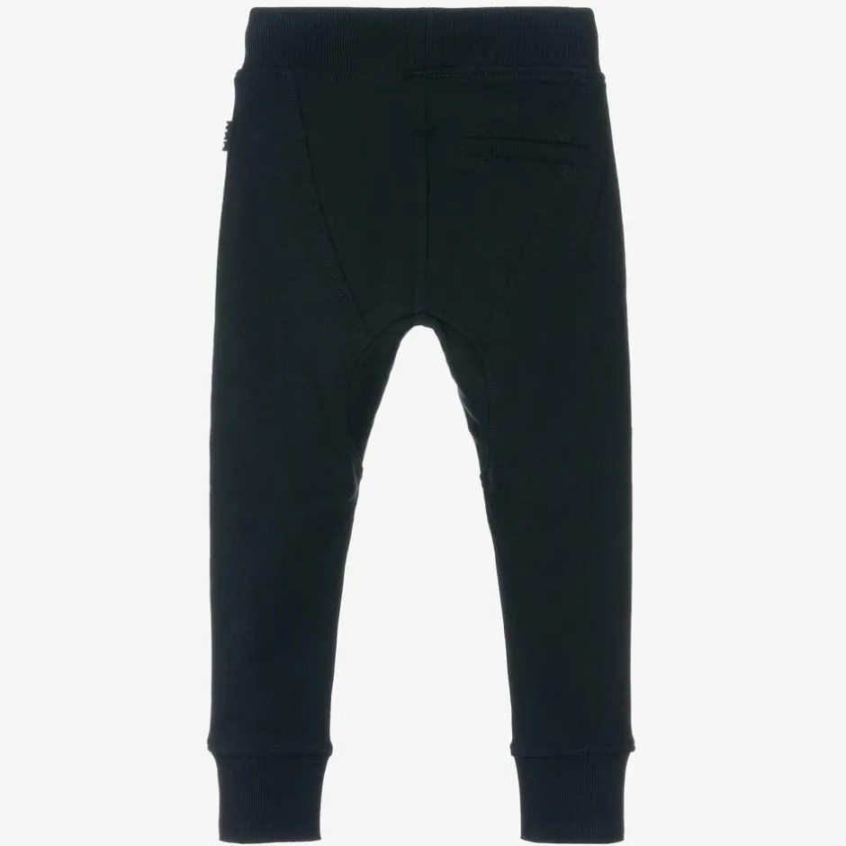 Casual navy blue joggers for boys by Molo, made in soft mid-weight organic cotton jersey. These joggers have a ribbed drawstring waist, zip-up front pockets and a faux pocket on the back for laid-back styling.