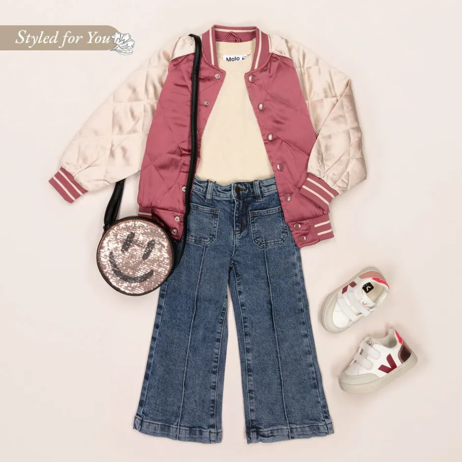 Molo Girls Pink Quilted Satin Bomber Jacket DarkRose Sale