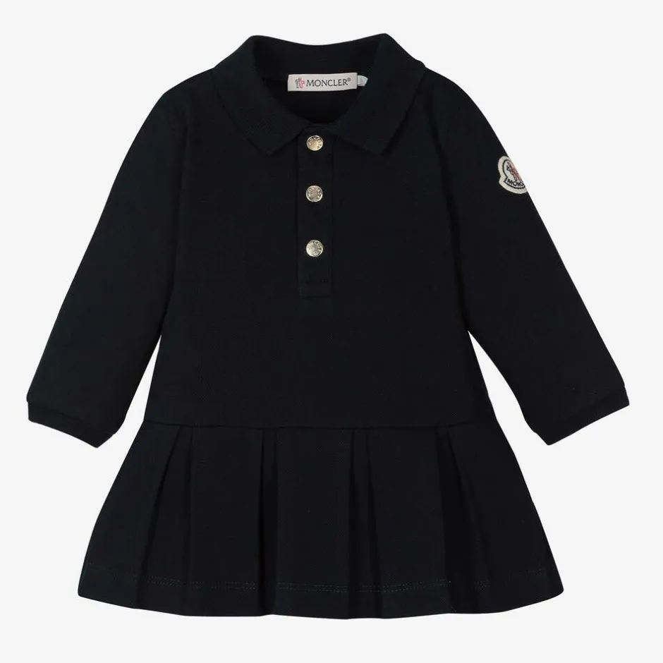 Moncler Enfant Baby Girls Navy Blue Cotton Piqué Dress Discount