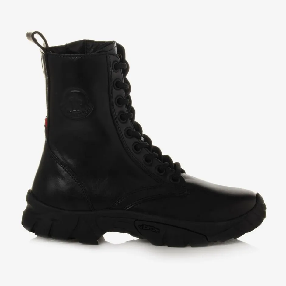 Moncler Enfant Black Leather Trek Ankle Boots Clearance