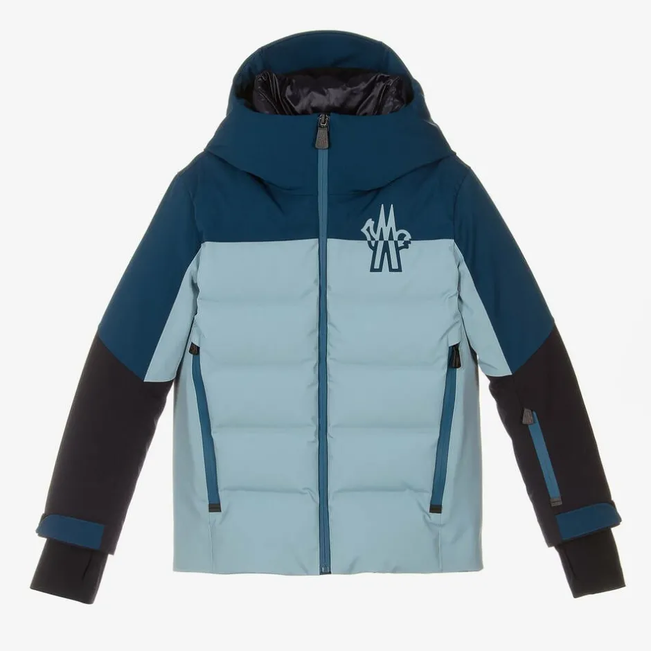 Moncler Enfant Boys Blue Colourblock Montmiral Ski Jacket Clearance