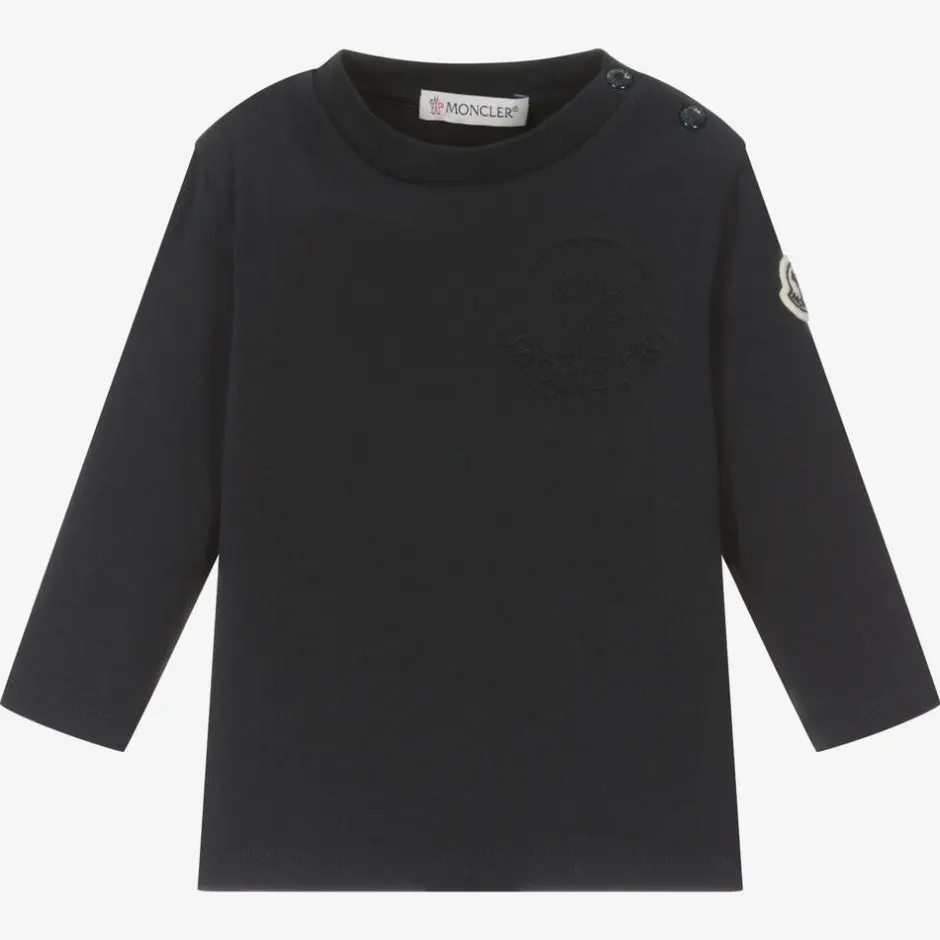 Moncler Enfant Boys Navy Blue Cotton Embossed Top Hot
