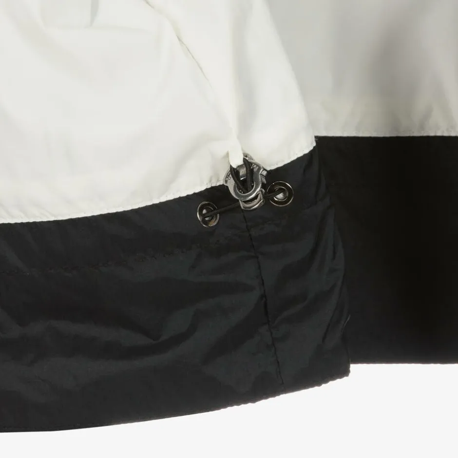 A black technical hooded jacket for girls by luxury French brand, Moncler Enfant. It is made in the designers signature longue saison fabric, which is silky smooth and lightweight for protective comfort. Neatly fastening with a zip, there are popper fastening pockets, and a tonal logo patch on the arm. An adjustable toggle is featured inside, designed to cinch in the waist for shape and warmth.