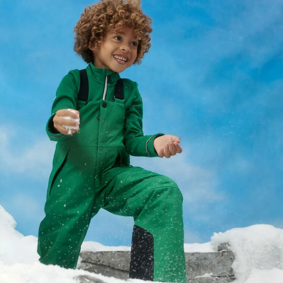 Green high-performance ski salopettes for boys and girls by luxury label Moncler Enfant. Designed for intensive sport, they boast water-repellent, breathable and wind-resistant qualities. Padded with warm yet lightweight, recycled Primaloft padding, they provide good thermal insulation even when wet and the zips are waterproof for extra protection from the elements. The legs, fastenings and adjustable shoulder straps are detailed with logos for instant brand awareness. They have internal elasticated gaiters and taped seams to keep out the snow and a polar fleece part-lining for extra warmth. There are reinforced panels on the legs for increased durability and fleece-lined zip-up pockets to warm small hands. A black logo patch on the back completes this designer look.