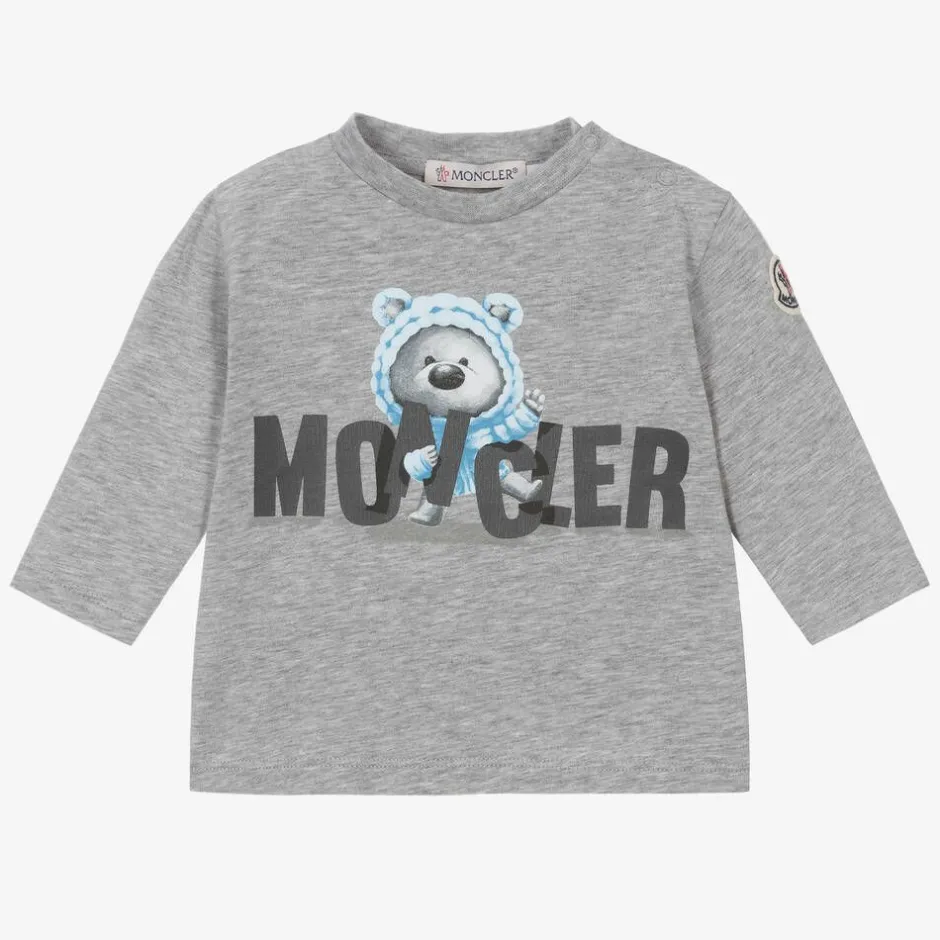 Moncler Enfant Grey Marl Cotton Bear Top Discount
