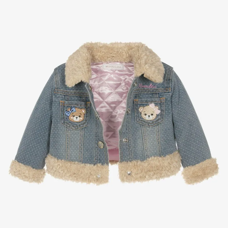 Monnalisa Girls Blue Denim Teddy Bear Jacket Outlet