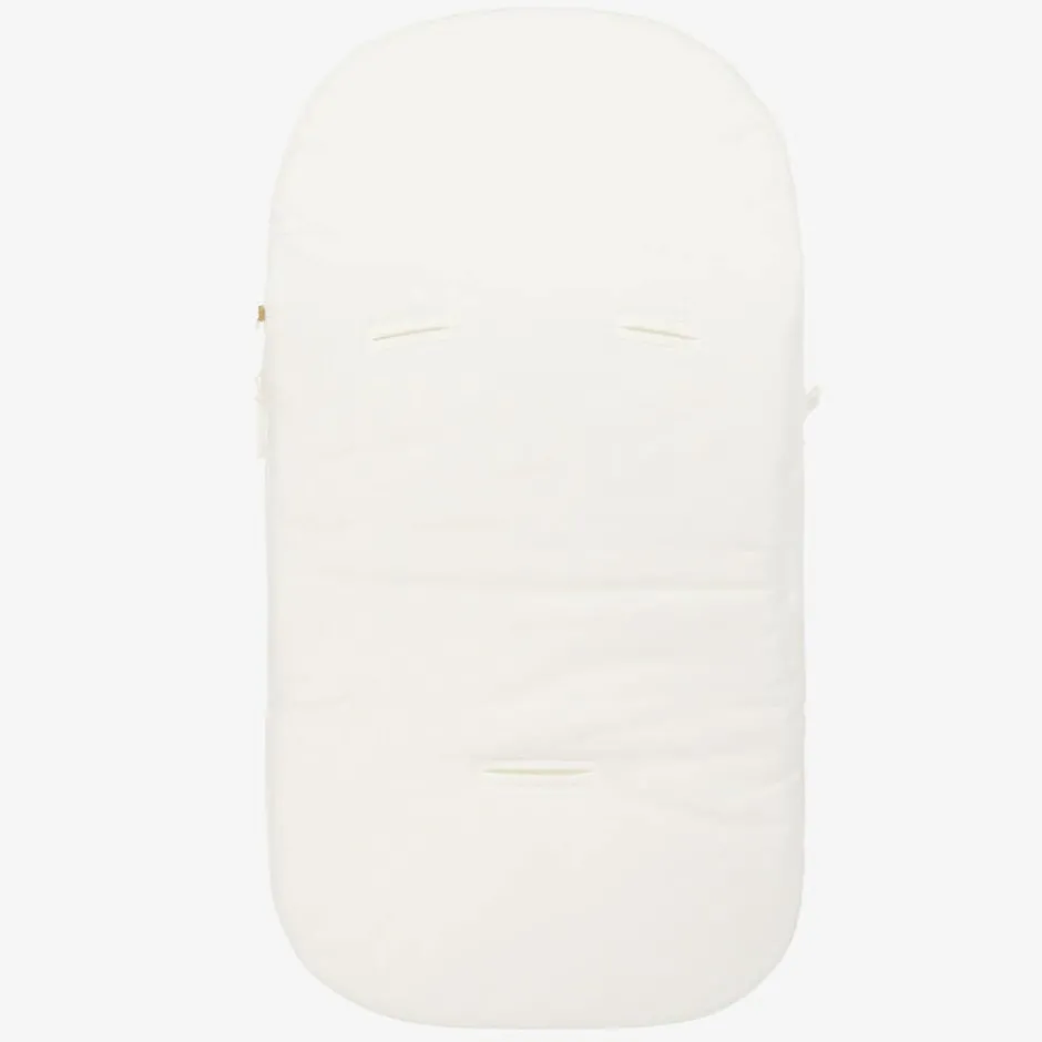 Ivory nest for baby boys and girls by Moschino Baby, made from cotton jersey for a soft and snuggly feel. Soothing for baby, this padded nest is printed with bold logo lettering and three Moschino Teddy Bear characters. It fastens with a zip down one side and along the base. The fold-down flap secures with ties at each side and the openings on the back mean it can be easily moved into the car seat or stroller. A black logo patch at the bottom adds further branding.