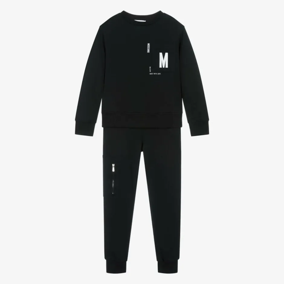Moschino Kid-Teen Black Cotton M Logo Tracksuit Clearance